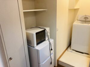 (テレビ・冷蔵庫・洗濯機・カーテン・エアコン・電子レンジ・スマートロック)設備充実のお部屋です! コンビニまで徒歩1分です。